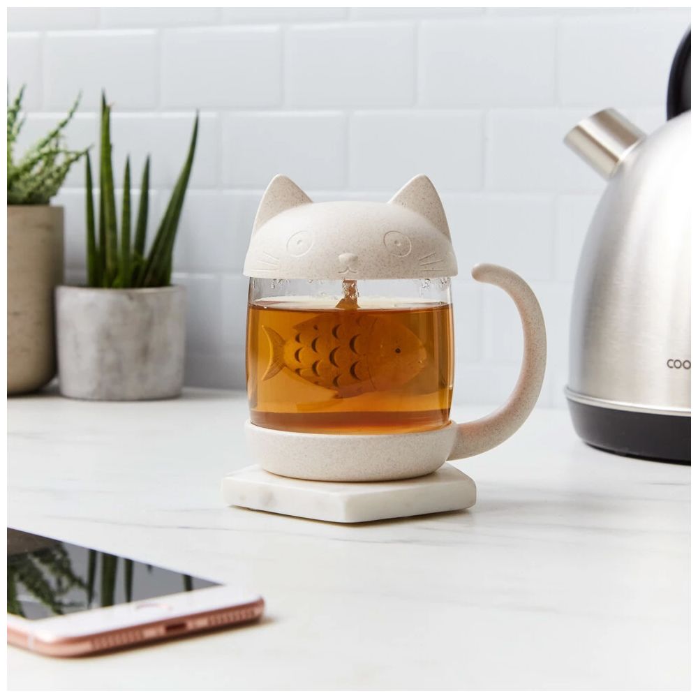 - Katzen Teeglas mit Fisch Tee-Ei